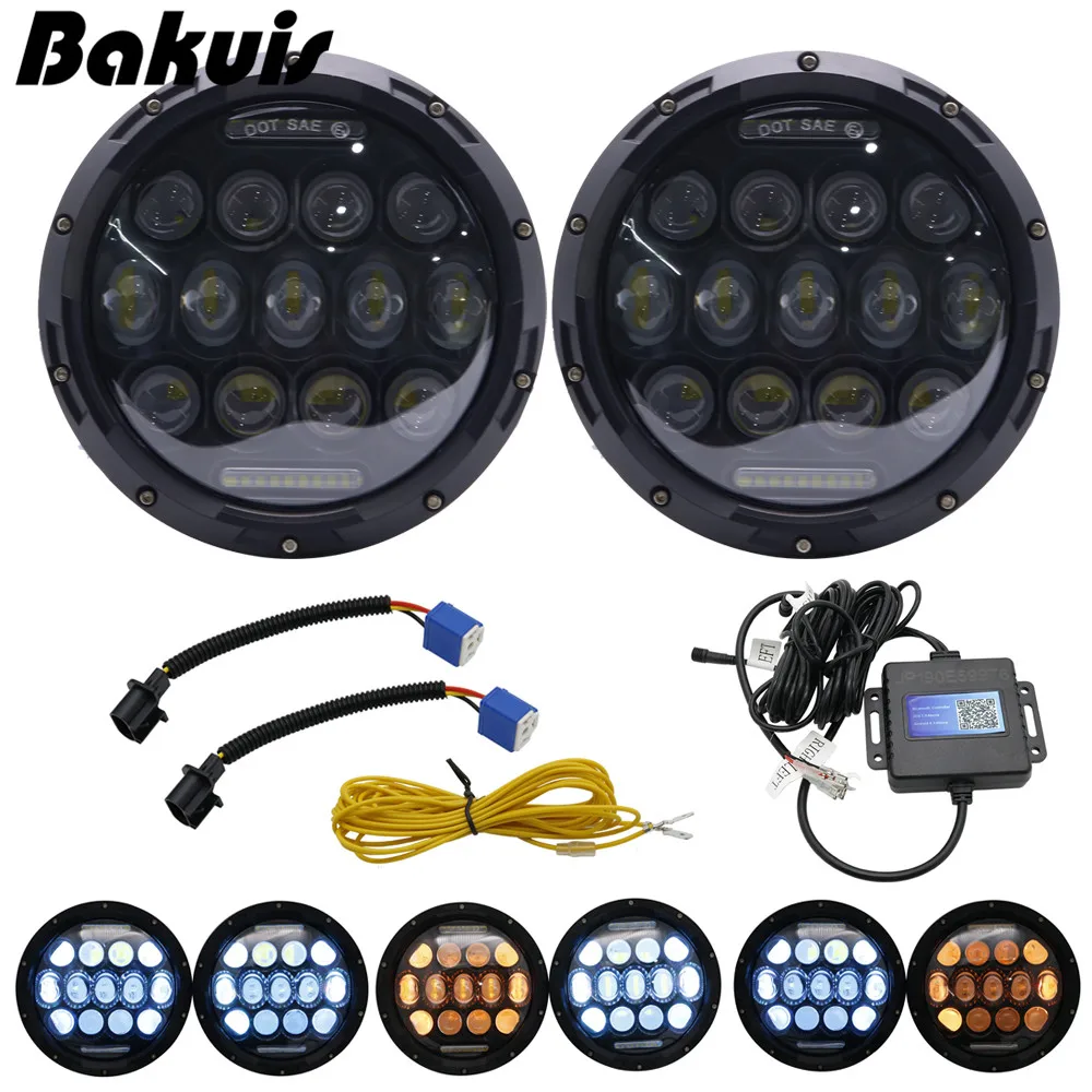 TOP 2X Wrangler 7inch RGB DRL Halo Ring Round LED Headlights Angel Eyes with Multicolor Bluetooth Remot