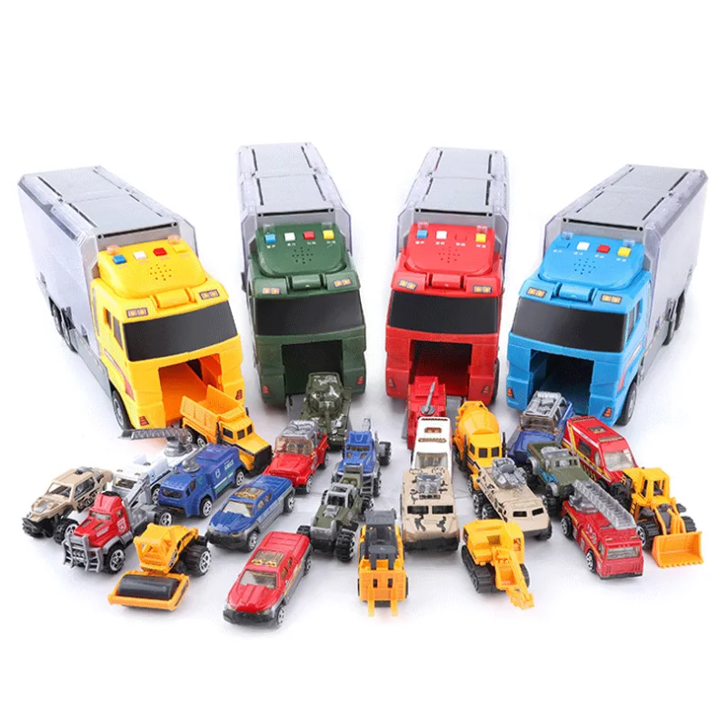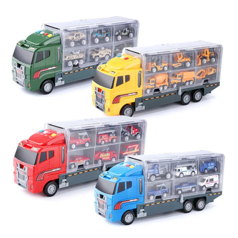 Big Truck & 6PCS Mini Alloy Diecast Car Model 1:64 Scale Toys Vehicles Carrier Truck Engineering Ca